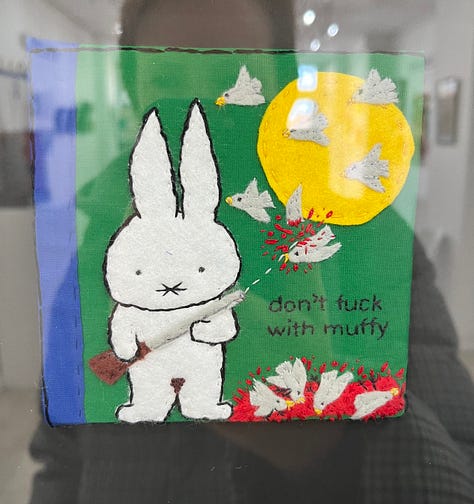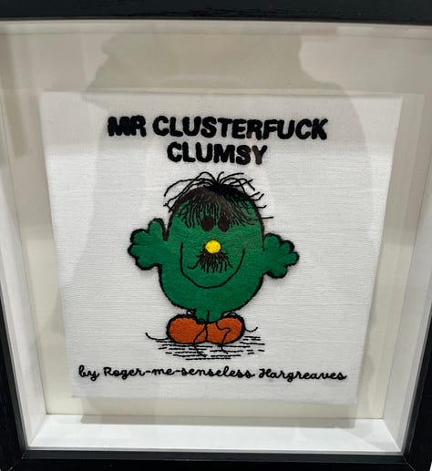 Finally, a little highlight this week has been the PEG Whitstable exhibition. (PEG stands for the Profanity Embroidery Group). I have been before and it is both brilliant and bonkers and of course sweary. It was a good reminder that I want to be more creative this year. Here are a couple of highlights. Look away of you are easily offended. The theme was libraries.