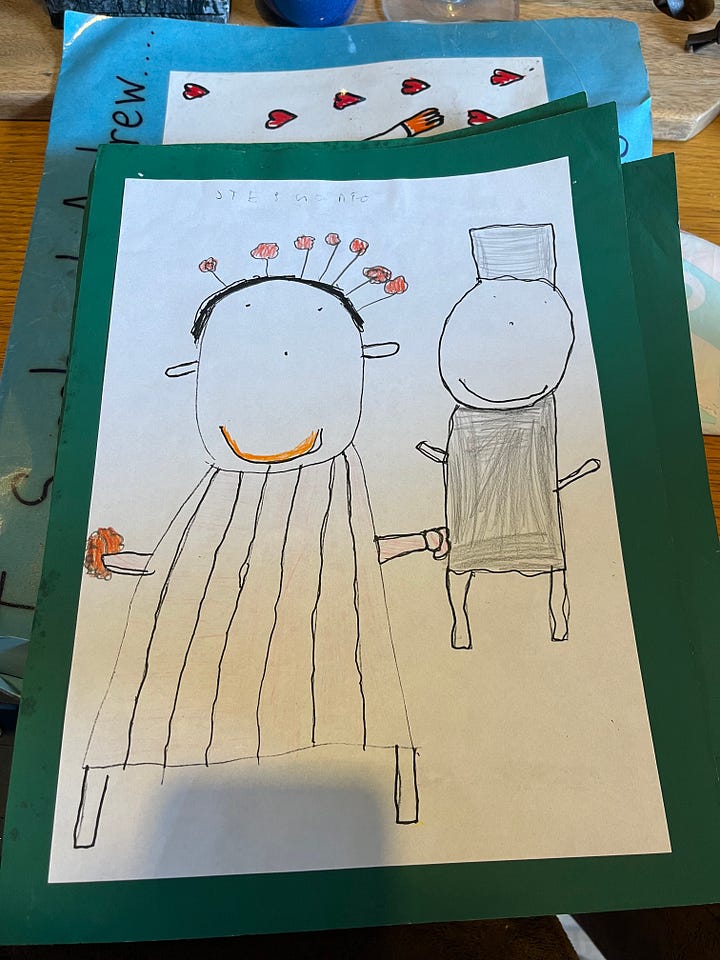 Then we came across all our wedding cards. We got married in 1997. We were babies. We did a lot of the organisation ourselves, we were on a budget. In the loft were the handwritten menus and table plans, along with the illustrations that I had my class at school write and draw. Hard to part with, because there were so many memories in there, but also we don’t need these things going forward.